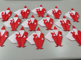 折り紙のサンタたちは、クリスマスプレゼントと一緒に、子どもたちへ届けさせていただきます。子どもたちの笑顔につながる、やさしい贈り物です。